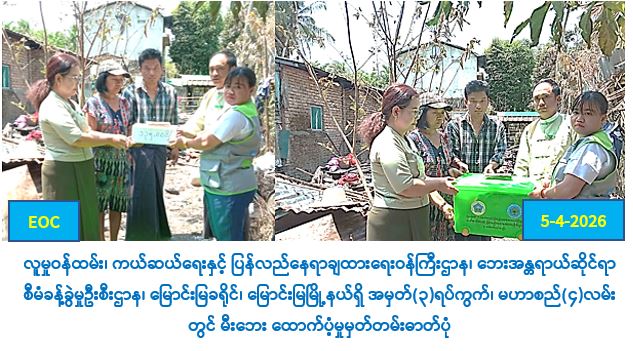 ရှမ်းပြည်နယ်(အရှေ့)၊ မိုင်းဆတ်ခရိုင်လူမှုဝန်ထမ်းရုံး၊ လက်ထောက်ညွှန်ကြားရေးမှူးဒေါ်သောင်းသောင်းအေးမှ ၂၀၂၀-၂၀၂၁ဘဏ္ဍာရေးနှစ်၊ ဒုတိယသုံးလပတ် (ဇန်နဝါရီ၊ဖေဖော်ဝါရီ၊မတ်) အတွက် လူမှုရေးပင်စင်ထောက်ပံ့ကြေးကိုမိုင်းဆတ်ခရိုင်၊ မိုင်းဆတ်မြို့၊ ကျတီကျေးရွာအုပ်စုမှ အသက်(၈၅)နှစ်နှင့်အထက်ဘိုးဘွား(၈)ဦးနှင့် တန့်ဆိုင်ကျေးရွာအုပ်စုမှဘိုးဘွား(၂)ဦးအားရပ်ကွက် အုပ်ချုပ်ရေးမှူးများနှင့်အတူအိမ်တိုင်ရာရောက်သွားရောက်ထောက်ပံ့ခဲ့ပါသည်။