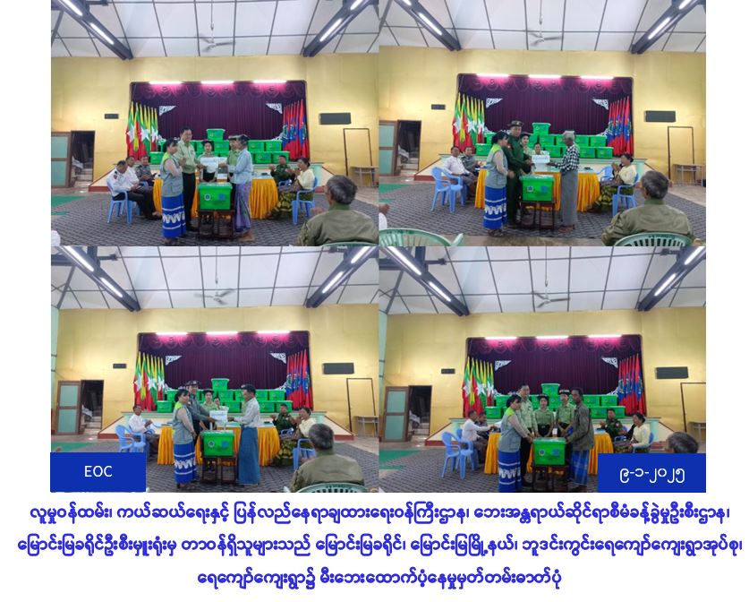 ကယ်ဆယ်ရေးနှင့် ပြန်လည်နေရာချထားရေးဝန်ကြီးဌာန၊ ဘေးအန္တာရာယ်ဆိုင်ရာစီမံခန့်ခွဲမှုဦးစီးဌာန၊ မြောင်းမြခရိုင်ဦးစီးမှူးရုံးမှ တာ၀န်ရှိသူများသည် (၂၄-၁၁-၂၀၂၃)ရက်နေ့၊