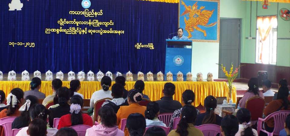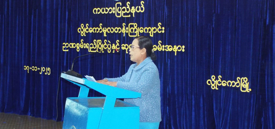 အဆိုပါအခမ်းအနားတွင် ကယားပြည်နယ်လူမှုဝန်ထမ်းရုံး၊ ပြည်နယ်ဦးစီးမှူး ဒေါ်စိန်စိန်မော်က အဖွင့်အမှာစကားပြောကြားခဲ့ပါသည်။