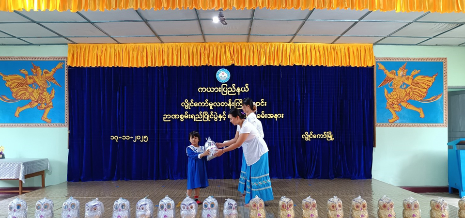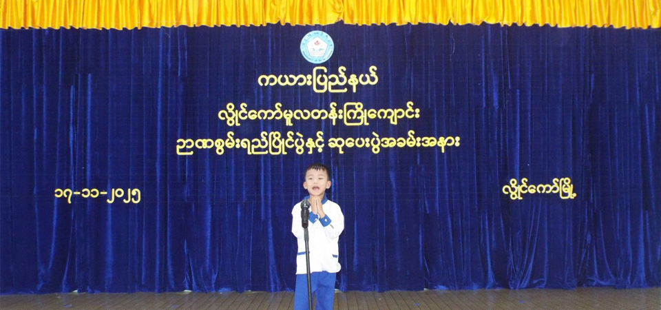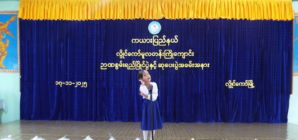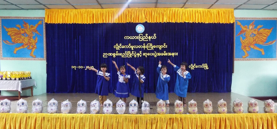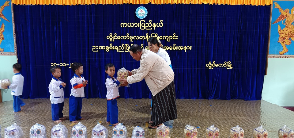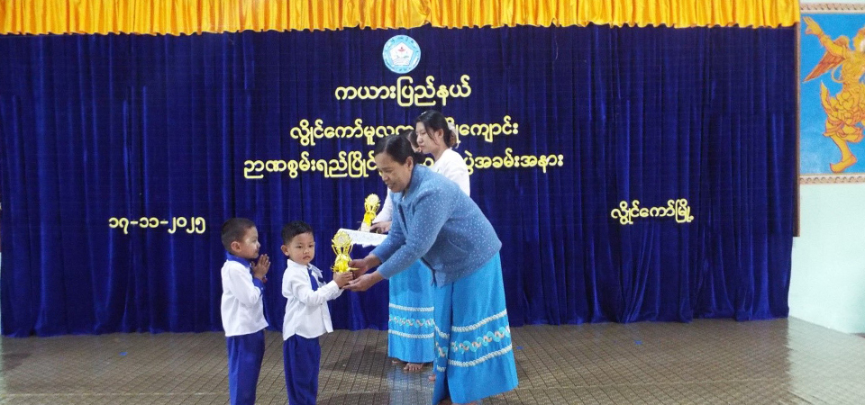 ကယားပြည်နယ်၊ လွိုင်ကော်မြို့တွင် ကယားပြည်နယ်လူမှုဝန်ထမ်းရုံးလက်အောက်ရှိ လွိုင်ကော်မူလတန်းကြိုကျောင်း၌ ဉာဏစွမ်းရည်ပြိုင်ပွဲနှင့်ဆုပေးပွဲအခမ်းအနားကို ၁၇.၁၁.၂၀၂၅ ရက် ၊ နံနက် (၀၉:၀၀) နာရီအချိန်တွင် ကျင်းပဆောင်ရွက်ခဲ့ပါသည်။