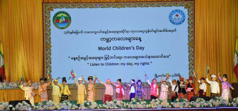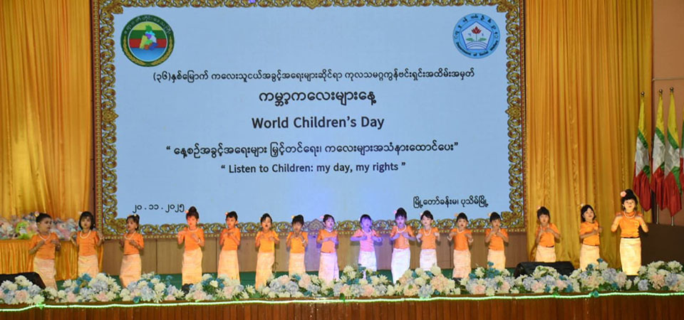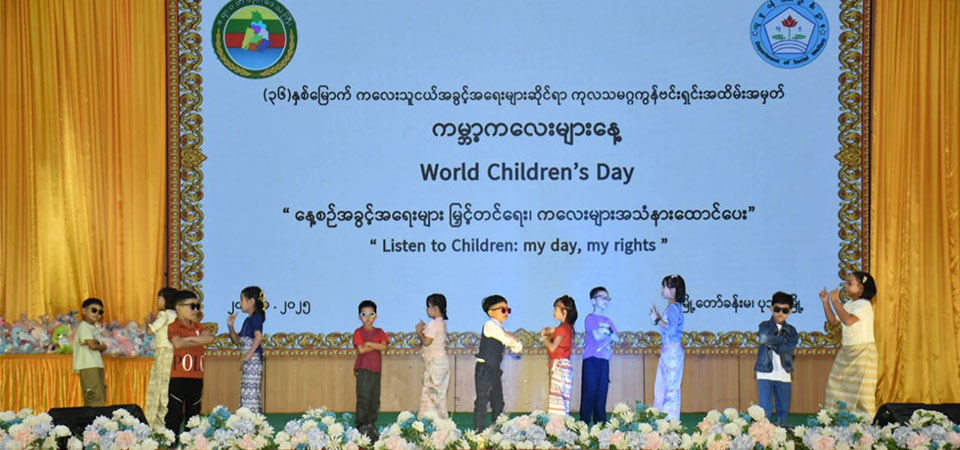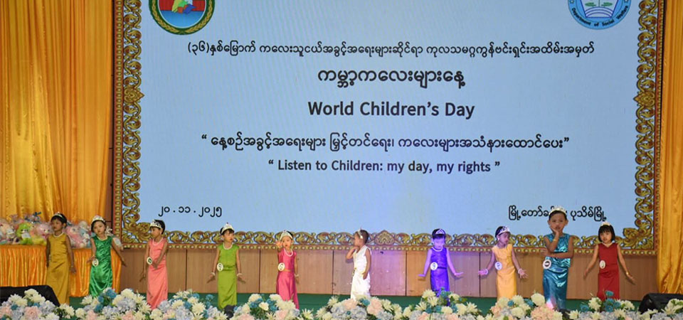 (၃၆)နှစ်မြောက် ကလေးသူငယ်အခွင့်အရေးများဆိုင်ရာ ကုလသမဂ္ဂကွန်ဗင်းရှင်း နှစ်ပတ်လည်အထိမ်းအမှတ် "ကမ္ဘာ့ကလေးများနေ့" အခမ်းအနားကို ၂၀.၁၁.၂၀၂၅ရက်၊ နံနက်ပိုင်း၌ ပုသိမ်မြို့၊ မြို့တော်ခန်းမတွင်ပြုလုပ်ခဲ့ရာ တိုင်းဒေသကြီးဝန်ကြီးချုပ် ဦးတင်မောင်ဝင်းနှင့်ဇနီး၊ အနောက်တောင်တိုင်းစစ်ဌာနချုပ် တိုင်းမှူး၏ဇနီး၊ ဧရာဝတီတိုင်းဒေသကြီးအစိုးရအဖွဲ့ဝင်များနှင့် ၎င်းတို့၏ဇနီးများ၊ လူမှုရေးအသင်းအဖွဲ့များ တက်ရောက်ခဲ့ ကြသည်။