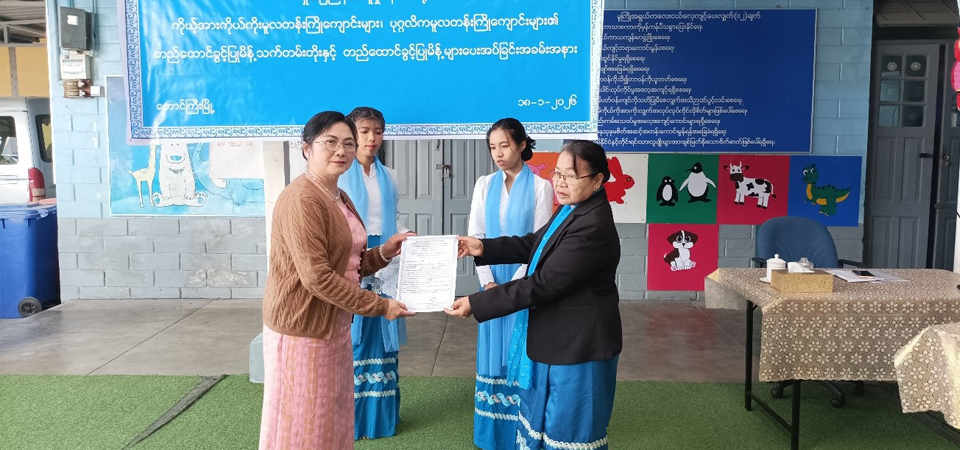 ၂၀၂၆ ခုနှစ် ၊ ဇန်နဝါရီလ ၁၈ ရက်တွင် ရှမ်းပြည်နယ်လူမှုဝန်ထမ်းရုံး၏ ကြီးကြပ်မှုအောက်ရှိ ကိုယ့်အားကိုယ်ကိုးမူလတန်းကြိုကျောင်းများ၊ ပုဂ္ဂလိကမူလတန်းကြိုကျောင်းများ၏ တည်ထောင်ခွင့်ပြုမိန့် သက်တမ်းတိုးနှင့်တည်ထောင်ခွင့်ပြုမိန့်များပေးအပ်ခြင်း အခမ်းအနားကို ရှမ်းပြည်နယ်လူမှုဝန်ထမ်းရုံးဝန်းအတွင်း အားကစားခန်းမ၌ ကျင်းပပြုလုပ်ခဲ့ရာ ရှမ်းပြည်နယ် ညွှန်ကြားရေးမှူးနှင့် ဝန်ထမ်းများ ၊ ခရိုင်/ မြို့နယ် လူမှုဝန်ထမ်းရုံးများမှ ခရိုင်/ မြို့နယ် ဦးစီးမှူးများနှင့် တောင်ကြီးမြို့နယ်အတွင်းရှိ ပုဂ္ဂလိကမူလတန်းကြိုကျောင်း (၂၄) ကျောင်းမှ တာဝန်ခံဆရာမများ တက်ရောက်ခဲ့ပြီး ပြည်နယ်ဦးစီးမှူးက အဖွင့်အမှာစကားပြောကြား၍ တည်ထောင်ခွင့်ပြုမိန့်အား ကျောင်းအလိုက်ပေးအပ်ခဲ့ပါသည်။