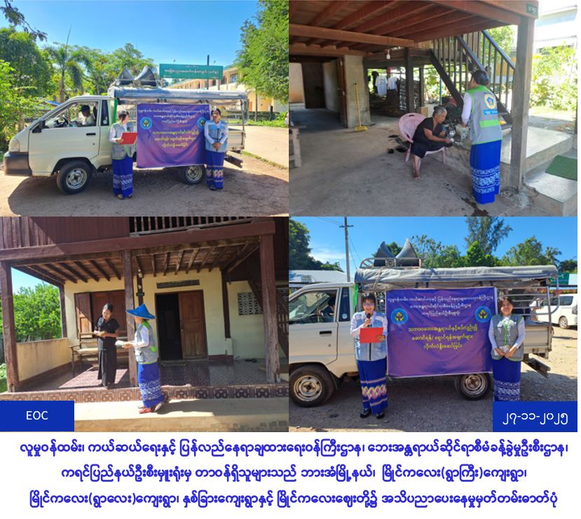 လူမှုဝန်ထမ်း၊ ကယ်ဆယ်ရေးနှင့် ပြန်လည်နေရာချထားရေးဝန်ကြီးဌာန၊ ဘေးအန္တရာယ်ဆိုင်ရာစီမံခန့်ခွဲမှု ဦးစီးဌာန၊ သထုံခရိုင်ဦးစီးမှူးရုံးမှ တာဝန်ရှိသူများသည် ပေါင်မြို့နယ်၊ ဆားဖိုစုရပ်ကွက်၌ (၃-၆-၂၀၂၂) ရက် နေ့ (၁၀း၁၀) နာရီအချိန်ခန့်တွင် ဖြစ်ပွားခဲ့သော မီးလောင်ကျွမ်းမှုကြောင့် တစိတ်တပိုင်းပျက်စီးခဲ့သည့် လူနေ အိမ် (၁)လုံးအတွက် အိမ်ဆောက်ပစ္စည်းဖိုးငွေ (၉၀,၀၀၀/-)၊ လူဦးရေ (၅)ဦးတို့အတွက် (၇)ရက်စာ ဆန်ရိက္ခာ ဖိုးငွေ(၁၀,၅၀၀/-)နှင့် ဒဏ်ရာရလူနာ (၁)ဦးအတွက် ထောက်ပံ့ငွေ (၅၀,၀၀၀/-) စုစုပေါင်း ထောက်ပံ့ငွေ (၁၅၀,၅၀၀/-) ကျပ်တို့အား (၆-၆-၂၀၂၂)ရက်နေ့ (၁၂:၃၀) နာရီအချိန်ခန့်တွင် ပေါင်မြို့နယ်၊ ဆားဖိုစုရပ်ကွက် အုပ်ချုပ်ရေးမှူးရုံး၌ ဘေးသင့်ပြည်သူထံ သွားရောက်ထောက်ပံ့ပေးအပ်ခဲ့ကြောင်း သတင်းရရှိပါသည်။