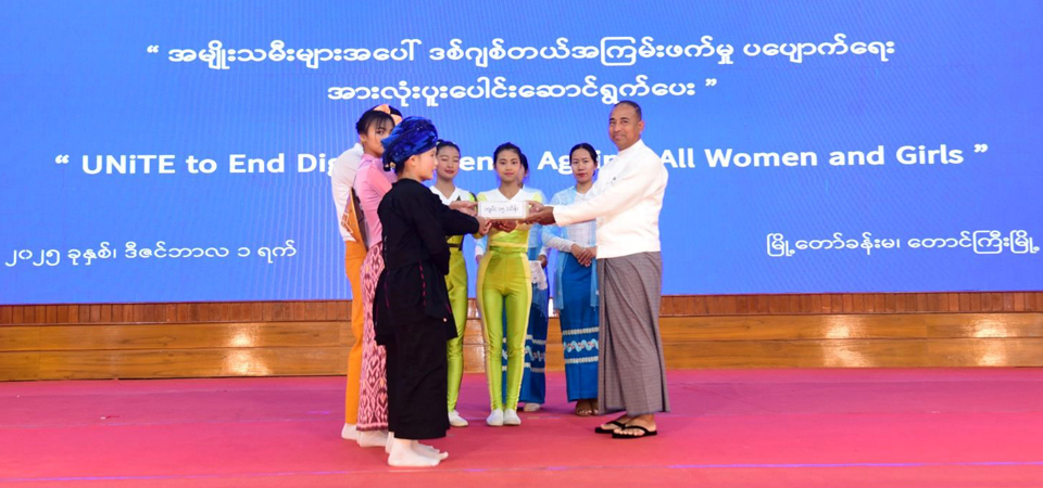 ရှမ်းပြည်နယ်အစိုးရအဖွဲ့က ကြီးမှူး၍ ၂၀၂၅ ခုနှစ်၊ အမျိုးသမီးများအပေါ် အကြမ်းဖက်မှုပပျောက်ရေး(၁၆) ရက်တာလှုပ်ရှားမှု အခမ်းအနားကို (၁.၁၂.၂၀၂၅)ရက် ၊ နံနက် (၁၀:၀၀)နာရီ အချိန်တွင် ရှမ်းပြည်နယ်၊ တောင်ကြီးမြို့ ၊ မြို့တော်ခန်းမ၌ ကျင်းပပြုလုပ်ခဲ့ပါသည်။