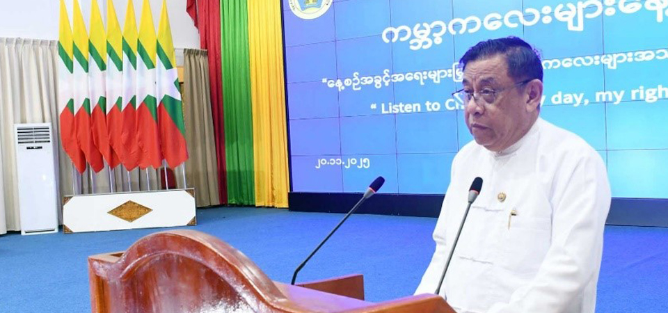 အမှာစကားပြောကြားရာတွင် နိုင်ငံတော်စီမံအုပ်ချုပ်ရေးကောင်စီ ဦးဆောင်မှုအောက်တွင်