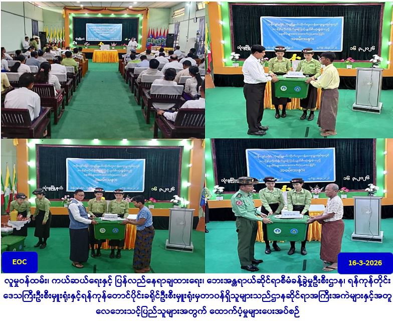 လူမှုဝန်ထမ်း၊ ကယ်ဆယ်ရေးနှင့် ပြန်လည်နေရာချထားရေးဝန်ကြီးဌာန၊ ဘေးအန္တရာယ်ဆိုင်ရာစီမံခန့်ခွဲမှုဦးစီးဌာန၊ ရန်ကုန်တိုင်းဒေသကြီးဦးစီးမှူးရုံးမှ တာ၀န်ရှိသူများသည် (၁၂-၁၁-၂၀၂၅) ရက်နေ့၊ (၀၉:၀၀) နာရီအချိန်တွင် သဘာဝဘေးအန္တရာယ်ကြိုတင်ကာကွယ်ရေး ငလျင်သဏ္ဌာန်တူဇာတ်တိုက်လေ့ကျင့်ရေး သရုပ်ပြအခမ်းအနားကို လှည်းကူးမြို့နယ်၊ အခြေခံပညာအထက်တန်းကျောင်း (လှည်းကူး) ၌ ကျင်းပ ပြုလုပ်ခဲ့ပါသည်။ ကြိုတင်ခန့်မှန်း၍မရသောငလျင်ဘေးအန္တရာယ်အား ပြည်သူများနှင့် ကျောင်းသား၊ ကျောင်းသူများသိရှိစေရန်နှင့် ငလျင်ဘေးအန္တရာယ်ကြုံတွေ့ပါက မိမိအသက်များအား သေဆုံးမှုလျော့ပါး သက်သာစေရန်ရည်ရွယ်၍ သဘာဝဘေးအန္တရာယ်ကြိုတင်ကာကွယ်ရေး ငလျင်သဏ္ဌာန်တူဇာတ်တိုက်လေ့ကျင့်ခြင်း၊ ငလျင်လှုပ်ခတ်ပါက ခိုလှုံရာနေရာသို့ ရွေ့ပြောင်းခြင်း၊ ရှာဖွေကယ်ဆယ်ရေးပစ္စည်းများဖြင့် ဆောင်ရွက်ခြင်း၊ ကျန်းမာရေးစောင့်ရှောက်မှုပေးခြင်း၊ ရှေးဦးပြုစုခြင်း၊ ဆေးရုံဆေးခန်းသို့ပို့ဆောင်ခြင်း၊ အစားအစာရိက္ခာဝေငှခြင်း၊ ခိုလှုံရာနေရာမှ ပြန်လည်ထွက်ခွာခြင်းလုပ်ငန်းများအား အ.ထ.က (လှည်းကူး) ကျောင်းမှ ကျောင်းသား၊ ကျောင်းသူများနှင့်ပူးပေါင်း၍ လက်တွေ့ဇာတ်တိုက်သရုပ်ပြလေ့ကျင့်ခဲ့ကြပါသည်။ အဆိုပါ အခမ်းအနားသို့ လှည်းကူးခရိုင်စီမံခန့်ခွဲရေးနှင့် အုပ်ချုပ်ရေးကော်မတီဥက္ကဌ ဦးကျော်ဝင်းလှိုင် နှင့်အဖွဲ့ဝင်များ၊ မြို့နယ်စီမံခန့်ခွဲရေးနှင့် အုပ်ချုပ်ရေးအဖွဲ့ဝင်များ၊ မြို့နယ်ဌာနဆိုင်ရာများတက်ရောက် ကြည့်ရှုပြီး ရန်ကုန်တိုင်းဒေသကြီး ဘေးအန္တရာယ်ဆိုင်ရာစီမံခန့်ခွဲမှုဦးစီးဌာန၊ မြို့နယ်မီးသတ်ဦးစီးဌာန၊ မြို့နယ်ကြက်ခြေနီတပ်ဖွဲ့ဝင်များ၊လူမှုရေးအသင်းအဖွဲ့များမှ သရုပ်ပြဆောင်ရွက်ပေးသူ (၅၀) ဦးနှင့် အ.ထ.က (လှည်းကူး) မှဆရာ၊ ဆရာမများနှင့် ကျောင်းသား၊ ကျောင်းသူများ စုစုပေါင်းလူဦးရေ (၆၀၀) ဦး တို့ကပူးပေါင်းပါဝင်ဆောင်ရွက်ခဲ့ပါသည်။