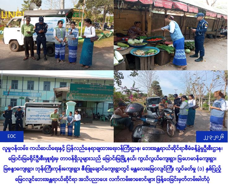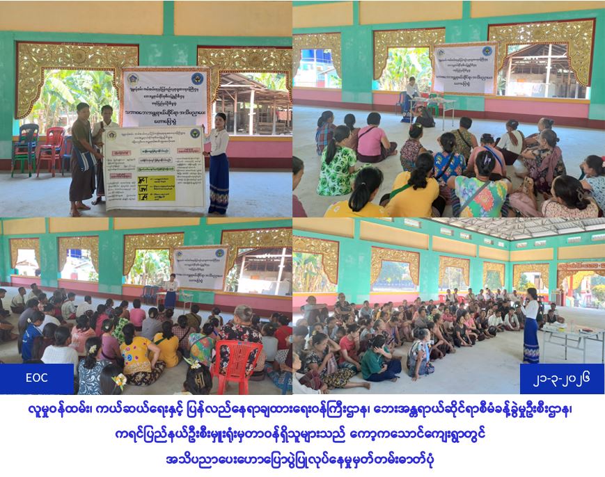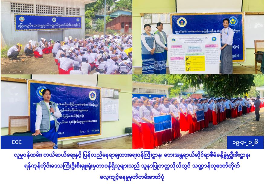 လူမှုဝန်ထမ်း၊ ကယ်ဆယ်ရေးနှင့် ပြန်လည်နေရာချထားရေးဝန်ကြီးဌာန၊ ဘေးအန္တရာယ်ဆိုင်ရာစီမံခန့်ခွဲမှုဦးစီးဌာန၊ မုဒုံမြို့နယ်ဦးစီးမှူးရုံးမှ တာဝန်ရှိသူများသည် (၉-၁၀-၂၀၂၁) ရက်နေ့၊ (၁၁:၀၀) နာရီအချိန်မှ (၁၄:၀၀) နာရီအချိန်အထိ မွန်ပြည်နယ်၊ မော်လမြိုင်ခရိုင်၊ မုဒုံမြို့နယ်၊ ကော့ခပုံကျေးရွာနှင့် မှိန်ကနိမ်းကျေးရွာတို့တွင် သဘာဝဘေးအန္တရာယ်များအကြောင်းနှင့် ကိုဗစ်-၁၉ ကူးစက်ရောဂါကာကွယ်ရေး အသိပညာပေးနှိုးဆော်ခဲ့ပြီး လက်ကမ်းစာစောင်များဖြန့်ဝေပေးခဲ့ပါသည်။