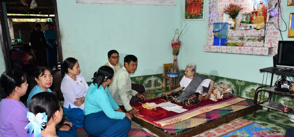 ၁.၁၀.၂၀၂၅ ရက်တွင်ကျင်းပပြုလုပ်ခဲ့သည့် အပြည်ပြည်ဆိုင်ရာသက်ကြီးပုဂ္ဂိုလ်များနေ့ အထိမ်းအမှတ်အတွက် မြန်မာတစ်နိုင်ငံလုံး အသက်အကြီးဆုံးပုဂ္ဂိုလ်ဖြစ်သည့် တနင်္သာရီတိုင်းဒေသကြီး၊ ကော့သောင်းမြို့နယ်၊ ရွှေဇင်ယော်ရပ်ကွက်၊ ပုလဲတွင်းလမ်းနေ အဘွား ဒေါ်ပန်းနွယ် အသက် (၁၂၁) နှစ်အတွက် ငွေကျပ် ၁,၀၀၀,၀၀ဝိ/- (ကျပ်တစ်ဆယ်သိန်းတိတိ) အား ၂၈.၁၀.၂၀၂၅ ရက်နေ့၊ မွန်းလွဲပိုင်းတွင် ထောက်ပံ့ပေးအပ်ရာ ခရိုင်စီမံခန့်ခွဲရေးနှင့်အုပ်ချုပ်ရေးကော်မတီ ဥက္ကဋ္ဌ ဦးရဲမြတ်တင့်၊ မြို့နယ်စီမံခန့်ခွဲရေးနှင့် အုပ်ချုပ်ရေးကော်မတီ ဥက္ကဋ္ဌ ဦးနိုင်လင်းထက်၊ ခရိုင် လူမှုဝန်ထမ်းရုံး၊ ခရိုင်/ မြို့နယ်မိခင်နှင့်ကလေးစောင့်ရှောက်မှုကြီးကြပ်ရေးအဖွဲ့၊ အမျိုးသမီးရေးရာ အဖွဲ့တို့မှ ဂုဏ်ပြုချီးမြှင့်ငွေသွားရောက် ပေးအပ်ခဲ့ပါသည်။