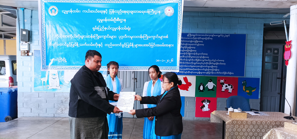 ၂၀၂၆ ခုနှစ် ၊ ဇန်နဝါရီလ ၁၈ ရက်တွင် ရှမ်းပြည်နယ်လူမှုဝန်ထမ်းရုံး၏ ကြီးကြပ်မှုအောက်ရှိ ကိုယ့်အားကိုယ်ကိုးမူလတန်းကြိုကျောင်းများ၊ ပုဂ္ဂလိကမူလတန်းကြိုကျောင်းများ၏ တည်ထောင်ခွင့်ပြုမိန့် သက်တမ်းတိုးနှင့်တည်ထောင်ခွင့်ပြုမိန့်များပေးအပ်ခြင်း အခမ်းအနားကို ရှမ်းပြည်နယ်လူမှုဝန်ထမ်းရုံးဝန်းအတွင်း အားကစားခန်းမ၌ ကျင်းပပြုလုပ်ခဲ့ရာ ရှမ်းပြည်နယ် ညွှန်ကြားရေးမှူးနှင့် ဝန်ထမ်းများ ၊ ခရိုင်/ မြို့နယ် လူမှုဝန်ထမ်းရုံးများမှ ခရိုင်/ မြို့နယ် ဦးစီးမှူးများနှင့် တောင်ကြီးမြို့နယ်အတွင်းရှိ ပုဂ္ဂလိကမူလတန်းကြိုကျောင်း (၂၄) ကျောင်းမှ တာဝန်ခံဆရာမများ တက်ရောက်ခဲ့ပြီး ပြည်နယ်ဦးစီးမှူးက အဖွင့်အမှာစကားပြောကြား၍ တည်ထောင်ခွင့်ပြုမိန့်အား ကျောင်းအလိုက်ပေးအပ်ခဲ့ပါသည်။