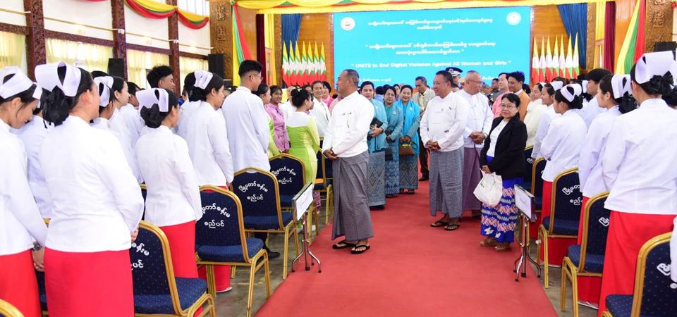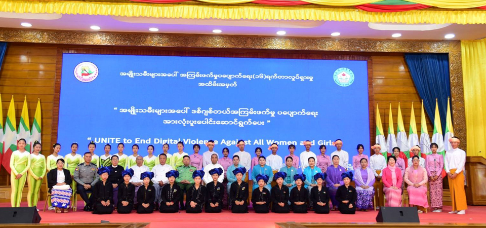 ရှမ်းပြည်နယ်အစိုးရအဖွဲ့က ကြီးမှူး၍ ၂၀၂၅ ခုနှစ်၊ အမျိုးသမီးများအပေါ် အကြမ်းဖက်မှုပပျောက်ရေး(၁၆) ရက်တာလှုပ်ရှားမှု အခမ်းအနားကို (၁.၁၂.၂၀၂၅)ရက် ၊ နံနက် (၁၀:၀၀)နာရီ အချိန်တွင် ရှမ်းပြည်နယ်၊ တောင်ကြီးမြို့ ၊ မြို့တော်ခန်းမ၌ ကျင်းပပြုလုပ်ခဲ့ပါသည်။