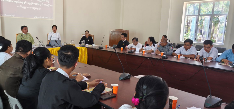 ၂၄-၃-၂၀၂၆ ရက်တွင် ညောင်လေးပင်ခရိုင် အမျိုးသမီးကော်မတီဝင်များအား ပဋိပက္ခအတွင်းလိင်ပိုင်းဆိုင်ရာ အကြမ်းဖက်မှုတားဆီးကာကွယ်ရေးနှင့် တုံ့ပြန်ဆောင်ရွက်ရေးဆိုင်ရာ အသိပညာပေးဆွေးနွေးပွဲကို ညောင်လေးပင်မြို့ရှိ ညောင်လေးပင်ခရိုင် အထွေထွေအုပ်ချုပ်ရေးဦးစီးဌာနရုံးတွင် ကျင်းပပြုလုပ်ခဲ့ပါသည်။