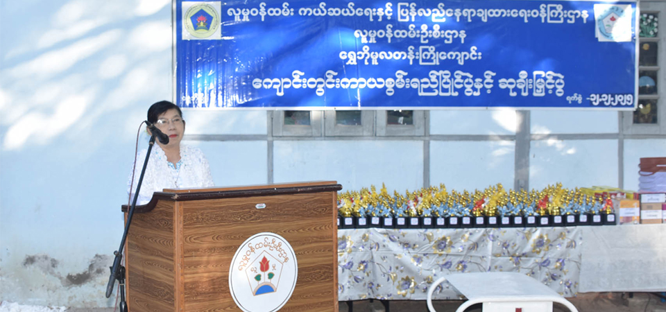 လူမှုဝန်ထမ်း၊ ကယ်ဆယ်ရေးနှင့် ပြန်လည်နေရာချထားရေးဝန်ကြီးဌာန၊ ဘေးအန္တရာယ်ဆိုင်ရာစီမံခန့်ခွဲမှု ဦးစီးဌာန၊ ရန်ကုန်တောင်ပိုင်းခရိုင်ဦးစီးမှူးရုံးမှ တာဝန်ရှိသူများသည် သန်လျင်ခရိုင်၊ သုံးခွမြို့နယ်၊ သုံးခွ အနောက်ကျေးရွာအုပ်စု၊ အောင်ဘုံသာကျေးရွာ၊ ကွင်းအမှတ်(၈၄၂A)၌ (၂၀-၃-၂၀၂၃) ရက်နေ့၊ နံနက် (၁၀း၀၀)နာရီအချိန်တွင် နေအိမ်အတွင်း၌ ထင်းမီးဖိုဖြင့် ဟင်းနွေးခဲ့ရာ အနီးရှိ ကတ်ထူစက္ကူ ဟောင်းစုပုံထားရာသို့ မီးကူးစက်လောင်ကျွမ်းမှု ဖြစ်ပွားခဲ့ရာမှ (၁၅×၁၅)ပေ သွပ်မိုး၊ ပျဥ်ခင်း၊ ပျဥ်ကာ နေအိမ်(၁)လုံး(လုံးဝပျက်စီး)မီးလောင်ဆုံးရှုံးခဲ့ရာ အဆိုပါ မီးဘေးသင့်နေအိမ် (၁) လုံး၊ အိမ်ထောင်စု (၁) စု၊ လူဦးရေ (၁) ဦးတို့အတွက် အိမ်ဆောက်ပစ္စည်းဖိုးထောက်ပံ့ငွေ (၂၀၀,၀၀၀)၊ ဆန်ရိက္ခာဖိုးငွေ (၇) ရက်စာ (၂,၁၀၀) ကျပ်နှင့် ကယ်ဆယ်ရေးပစ္စည်း (၁၇) မျိုး (၁) အိမ်ထောင်စာတို့အား (၂၂-၃-၂၀၂၃) ရက်နေ့၊(၁၂း၀၀)နာရီအချိန်တွင် မီးဘေးသင့်ပြည်သူလက်ဝယ်အရောက် သွားရောက်ထောက်ပံ့ပေးအပ်ခဲ့ ကြောင်း သတင်းရရှိပါသည်။
