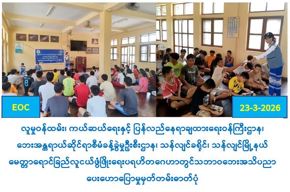 လူမှုဝန်ထမ်း၊ ကယ်ဆယ်ရေးနှင့် ပြန်လည်နေရာချထားရေးဝန်ကြီးဌာန၊ ဘေးအန္တရာယ်ဆိုင်ရာစီမံခန့်ခွဲမှုဦးစီးဌာန၊ တနင်္သာရီတိုင်းဒေသကြီးဦးစီးမှူးရုံးမှ တာဝန်ရှိသူများသည် (၂၇-၈-၂၀၂၁) ရက်နေ့၌ ရေဖြူမြို့နယ် (ခ) ရပ်ကွက်တွင် ကျန်းမာရေးဝန်ကြီးဌာနမှ ထုတ်ပြန်ထားသော Covid-19 ကူးစက်မှုမဖြစ်စေရန် အသိပညာပေးခြင်း၊ ရာသီအလိုက်ဖြစ်ပွားတတ်သော သဘာဝဘေးအန္တရာယ်များနှင့်ပတ်သက်သည့် ဆောင်ရန်/ရှောင်ရန်များအား အသိပညာပေးခြင်းများအား ရေဖြူမြို့နယ် အထွေထွေအုပ်ချုပ်ရေးဦးစီးဌာနနှင့်အတူ ပူးပေါင်းဆောင်ရွက်ခဲ့ပါသည်။