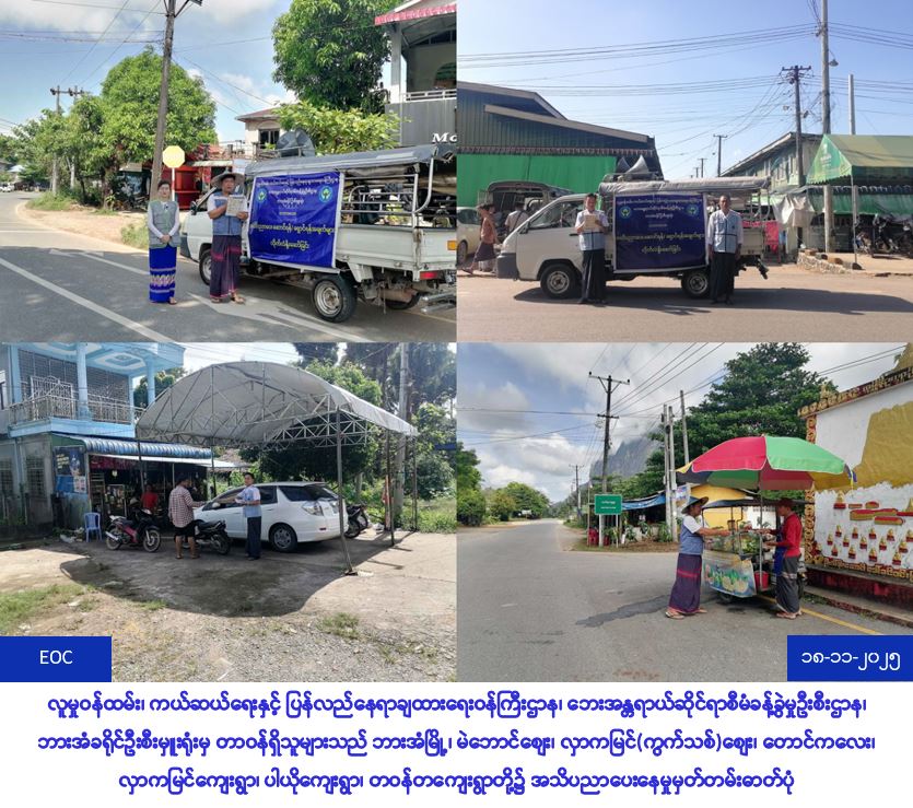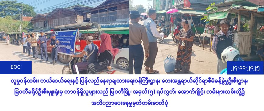 လူမှုဝန်ထမ်းကယ်ဆယ်ရေးနှင့် ပြန်လည်နေရာချထားရေးဦးစီးဌာန၊ ဘေးအန္တရာယ်ဆိုင်ရာစီမံခန့်ခွဲမှုဦးစီးဌာန၊ ရေကြည်မြို့နယ်ဦးစီးမှူးရုံးမှ