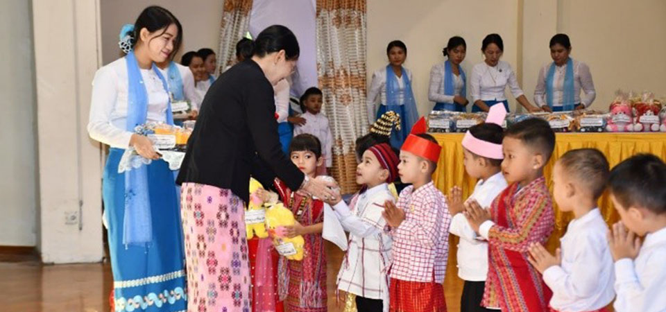 အဆိုပါ အခမ်းအနားတွင် အမှတ် (၂) မူလတန်းကြိုကျောင်းမှ ရင်သွေးငယ်လေးများက “ နိုင်ငံတကာရင်သွေးငယ်များ ” တေးသီချင်းဖြင့် တေးသရုပ်ဖော်၍ အခမ်းအနားကို ဖွင့်လှစ်ပြီး၊ မွန်ပြည်နယ်အစိုးရအဖွဲ့၊ ပြည်နယ်ဝန်ကြီးချုပ် ဦးအောင်ကြည်သိန်း ကအဖွင့်အမှာစကား ပြောကြားကာ လူမှုဝန်ထမ်းဦးစီးဌာနမှ ပေးပို့သည့် ကမ္ဘာ့ကလေးများနေ့ Video Clip အား ပြသပါသည်။ ထို့နောက် အမှတ် (၁) မူလတန်းကြိုကျောင်းက သားငယ်၊ သမီးငယ်လေးများက “ သွေးချင်းတို့ရဲ့မြေ” တေးသီချင်းဖြင့်လည်းကောင်း၊ အမှတ် (၃) မူလတန်းကြိုကျောင်းမှ သားငယ်၊ သမီးငယ်လေးများက “ ရွှေမြန်မာ ” သီချင်းဖြင့်လည်းကောင်း၊ ချောင်းဆုံမူလတန်းကြိုကျောင်းမှ သားငယ်လေးများက “ တို့ရှမ်းဌာနေ ” တေးသီချင်းဖြင့်လည်းကောင်း၊ သံဖြူဇရပ်မူလတန်းကြိုကျောင်းမှ သားငယ်၊ သမီးငယ်လေးများက “ အေးချမ်းတဲ့မွန်မြေ” သီချင်းဖြင့်လည်းကောင်း အသီးသီး တေးသရုပ်ဖော် ဖျော်ဖြေတင်ဆက်၍ ရင်သွေးငယ်လေးများအား မွန်ပြည်နယ်အစိုးရအဖွဲ့ ပြည်နယ် ဝန်ကြီးချုပ်၊ မွန်ပြည်နယ်တရားလွှတ်တော်တရားသူကြီးချုပ်နှင့် အစိုးရအဖွဲ့ဝင်ဝန်ကြီးများက အမှတ်တရလက်ဆောင်ဆုများ အသီးသီးပေးအပ်ကာ အခမ်းအနားကို ရုပ်သိမ်းလိုက်ပါသည်။