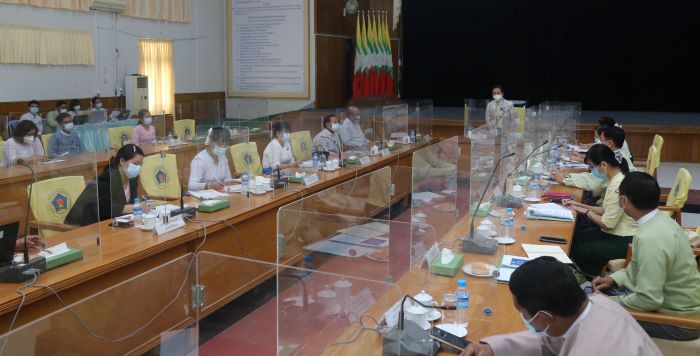 သဘာဝဘေးဆိုင်ရာစီမံခန့်ခွဲမှုတည်မြဲအမိန့် သုံးသပ်ပြင်ဆင်ရေးဆောင်ရွက်မှုလုပ်ငန်းများ၊ ဆက်လက်ဆောင်ရွက်မည့်လုပ်ငန်းများနှင့်စပ်လျဉ်း၍ ရှင်းလင်းတင်ပြခြင်းအစည်းအဝေးကျင်းပ