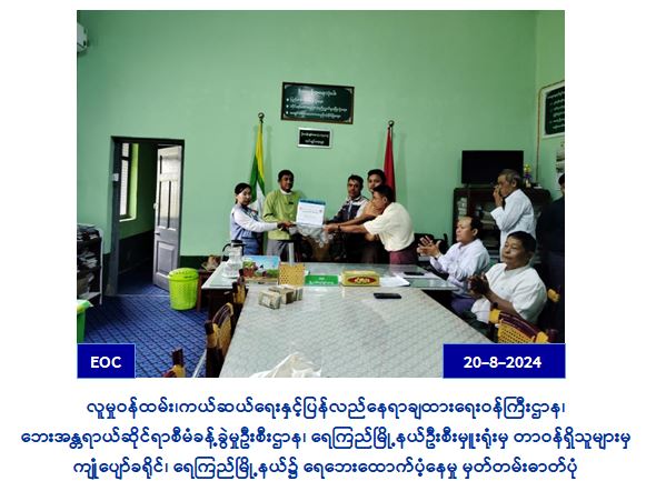လူမှုဝန်ထမ်း ၊ ကယ်ဆယ်ရေးနှင့် ပြန်လည်နေရာချထားရေးဝန်ကြီးဌာန၊ ပြည်ထောင်စုဝန်ကြီးဒေါက်တာစိုးဝင်း က ငလျင်ဘေးသင့်ဝန်ထမ်းများသို့ အလှူငွေ၊ ဆန်၊ ဆီ၊ မုန့်မျိုးစုံ၊ အသုံးအဆေ...