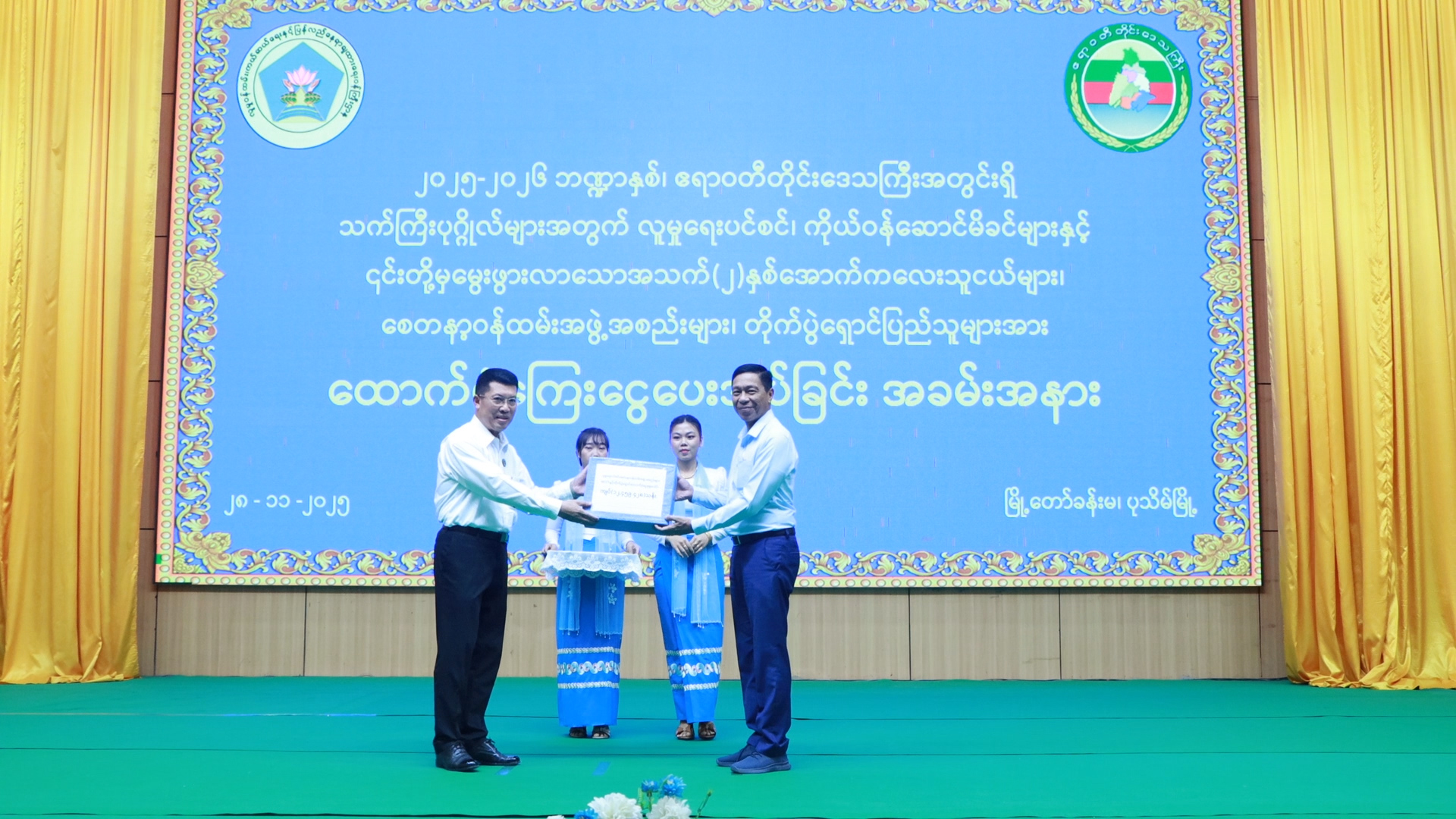 လူမှုဝန်ထမ်း၊ ကယ်ဆယ်ရေးနှင့် ပြန်လည်နေရာချထားရေးဝန်ကြီးဌာနသို့ Myanmar Royal Fortune ကုမ္ပဏီနှင့် Myanmar Royal Golden Elephant Medical Device ကုမ္ပဏီတို့က အနွေးထည် (၄၀၀၀)ထည်ကို ယနေ့နံနက်ပိုင်းတွင် လာရောက်ပေးအပ်လှူဒါန်းရာ ပြည်ထောင်စုဝန်ကြီး ဒေါက်တာသက်သက်ခိုင်က လက်ခံရယူပြီး ဂုဏ်ပြုမှတ်တမ်းလွှာ ပြန်လည်ပေးအပ်ခဲ့ပါသည်။